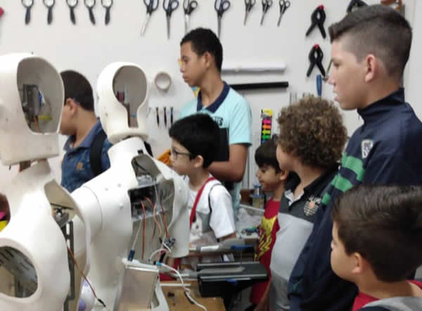 oficinas, cursos e apoio técnico para professores utilizarem robótica educacional.